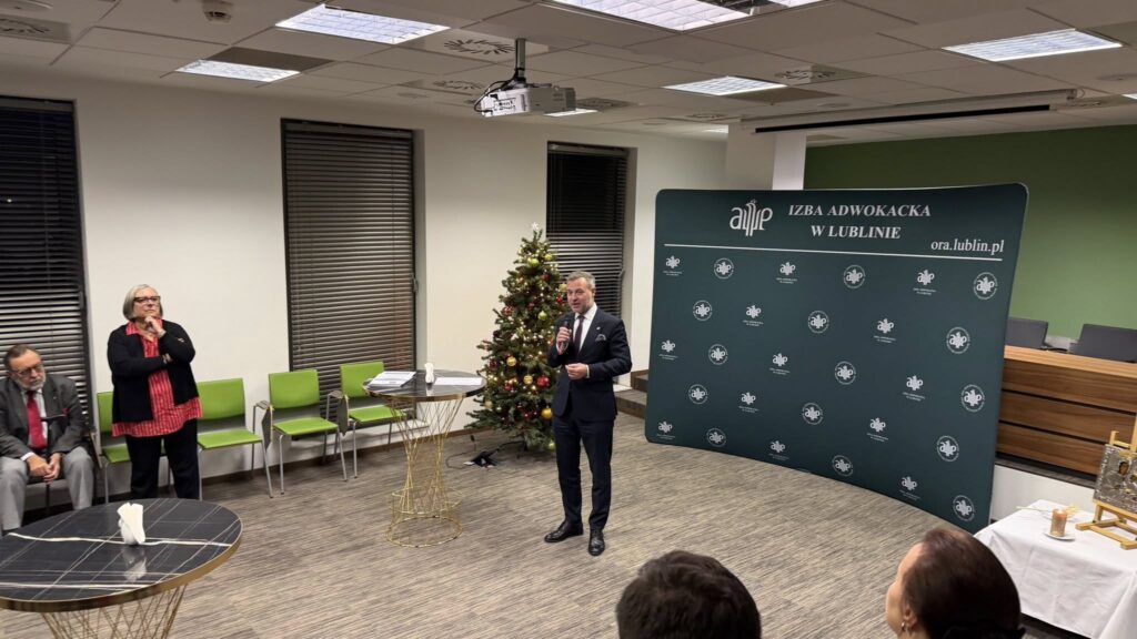 Za nami coroczne spotkanie opłatkowe Izby Adwokackiej w Lublinie, które odbyło się 17 grudnia 2025 r. w siedzibie ORA Lublin – Okręgowa Rada Adwokacka w Lublinie. Jak co roku wydarzenie zgromadziło członkinie i członków lubelskiej palestry – adwokatki i adwokatów oraz aplikantki i aplikantów adwokackich, pracowników Biura ORA oraz przyjaciół adwokatury – którzy przybyli do siedziby Rady, aby podzielić się opłatkiem, złożyć sobie życzenia oraz porozmawiać – nie tylko o wyzwaniach codziennej pracy zawodowej.